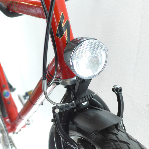 Unser Kunde hat sich auf Anhieb und ohne die geringsten Zweifel für diesen Rahmen entschieden. Mit dem obligaten 28″ Vorderad aufgebaut wurde dieser NEUBAU mit einem Nabendynamo und einem kräftigen Gepäckträger ausgestattet. Der geschwungene Lenker erinnert an das Fahrgefühl von Waffenrädern. Das hätte sogar dem Kaiser Franz Josef alle Ehre gemacht. Allerdings hat dieses Ding sonst nicht viel mit einem Waffenrad zu tun. Vor allem was die Spritzigkeit anbelangt, weiss man sogleich, dass dieser Rahmen ursprünglich für den brutalen Einsatz auf einsamen, steinigen single trails gebaut wurde. Und so wurde durch den Umbau wieder ein super geiles Stadtfahrrad. Und wer dieses neue Fahrgefühl selbst erleben möchte kommt einfach auf eine Probefahrt zu reanimated-bikes in die Westbahnstraße 35.